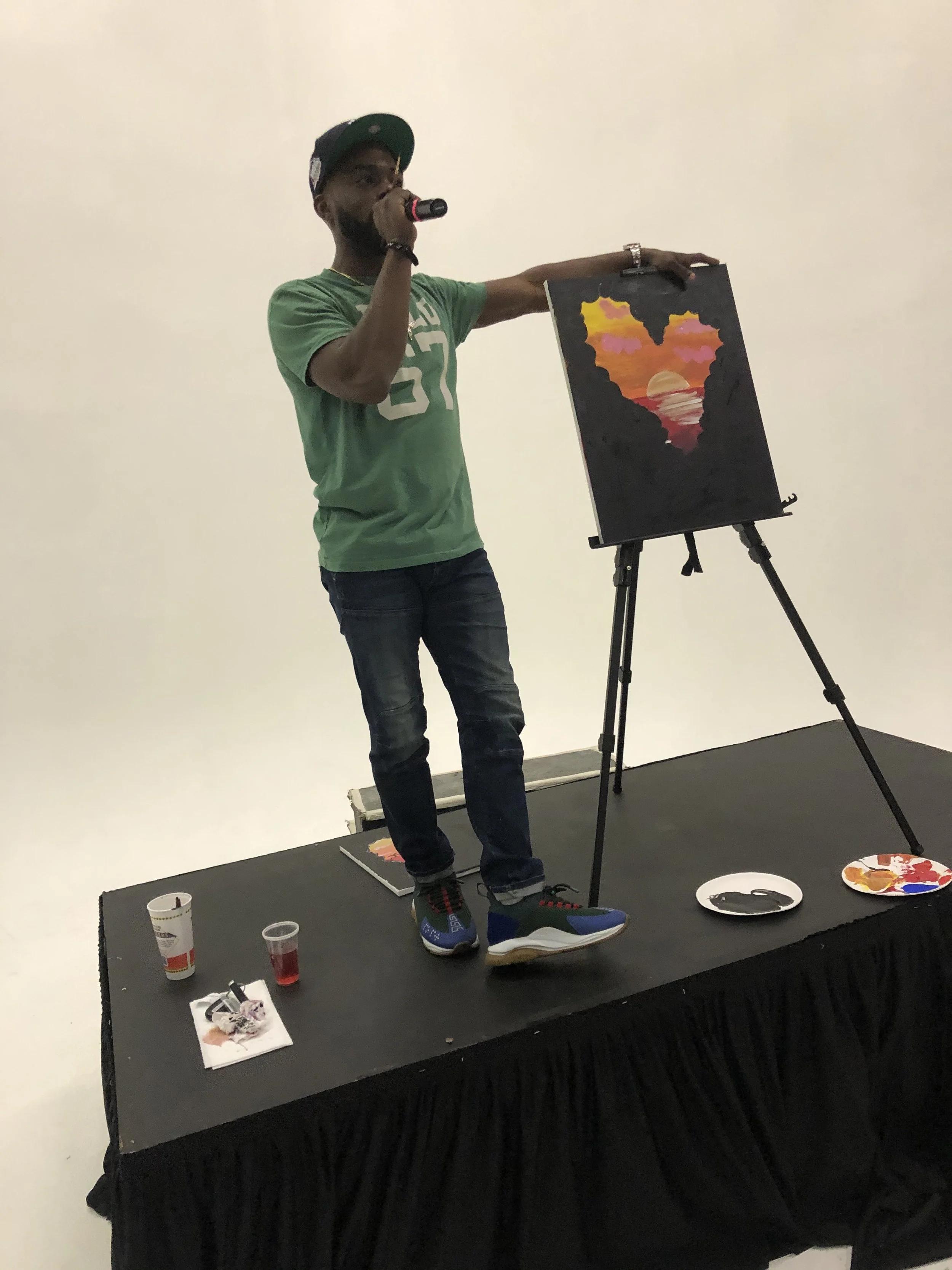 Acclaimed by Blavity as one of the “13 Dope Artists That Should Be in Your Instagram Feed,” Cyd is a Visual Artist from Brooklyn, NY specializing in acrylic and oil portraits. Services include murals, logo design, wood sculpting, body painting and much more. Cyd has been commissioned for over 200 portraits and custom creations and has hosted over 300 paint parties. His artwork can be found in businesses and homes across the Nation. In 2016 he launched a community outreach program ‘Snack and Paint’, which provides paint classes and private lessons for children.